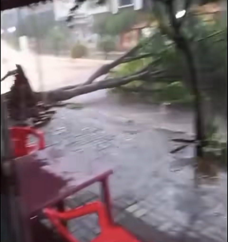 Um dos registros foi feito na Avenida Brasil, no Centro da cidade, onde uma árvore acabou sendo arrancada durante o temporal.