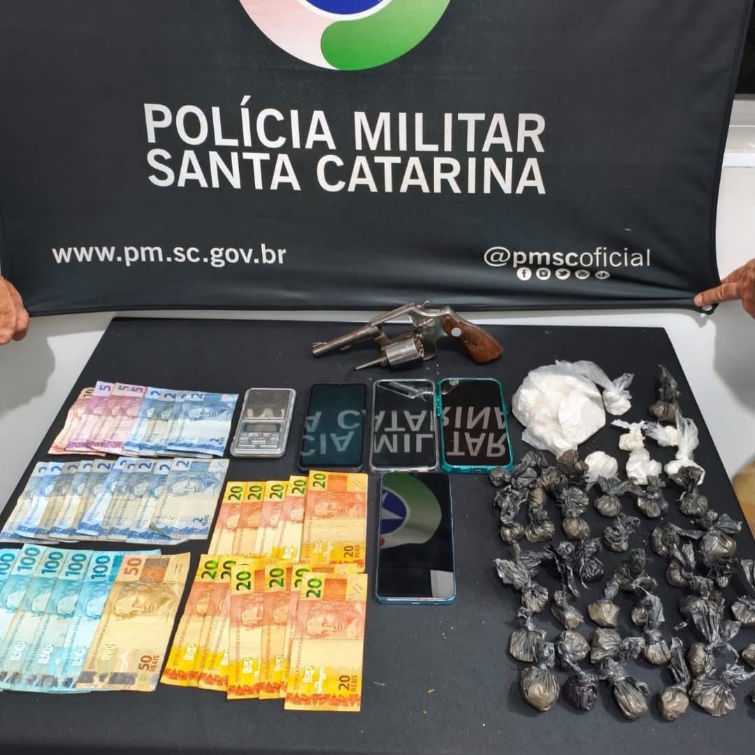 Em continuidade à ocorrência, outra mulher, de 25 anos, foi identificada como responsável pelo fornecimento dos entorpecentes. Com ela, foi localizado um revólver calibre .38 sem registro, além de mais drogas.