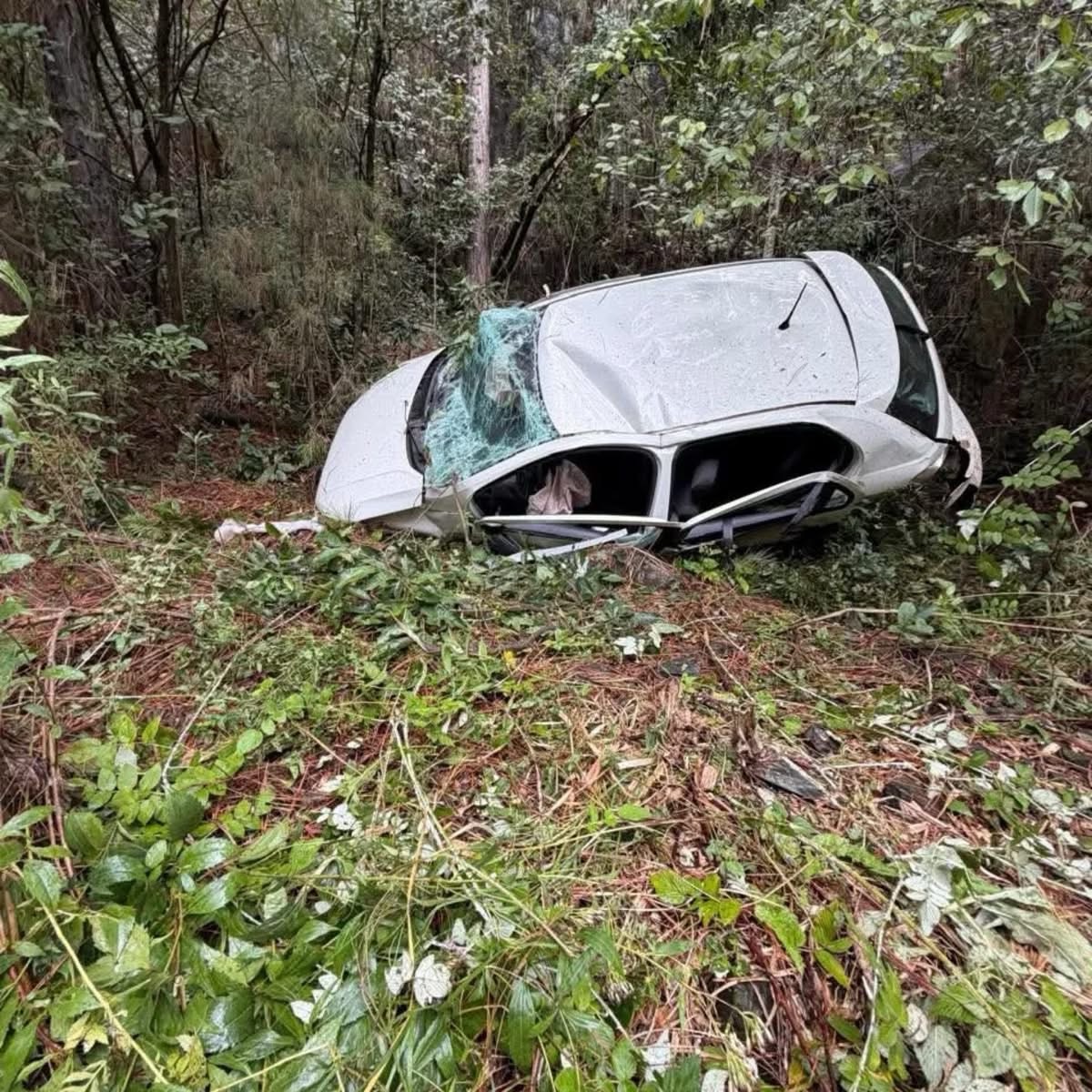 Quatro pessoas, dois homens e duas mulheres, ficaram feridas após um veículo sair da pista e cair em uma ribanceira de aproximadamente 30 metros, na região da pedreira da ervateira, em Catanduvas, na manhã deste domingo, 12 de abril.