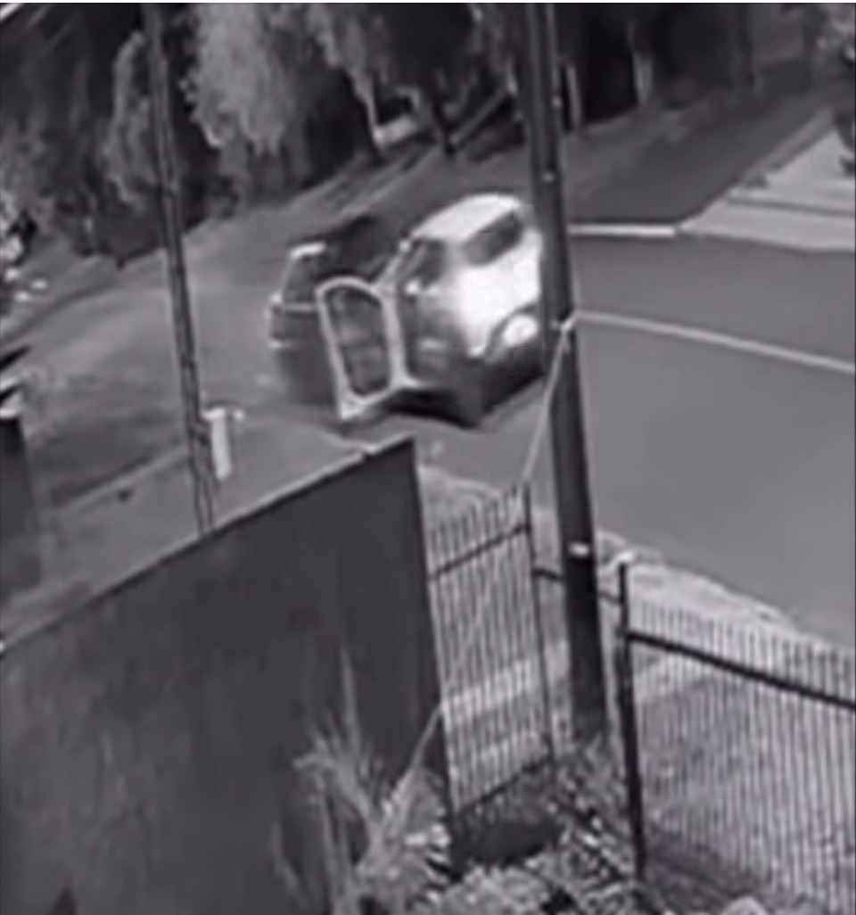 Com a força do impacto, o Kwid foi arrastado por vários metros e lançado contra a traseira de um caminhão que também estava estacionado na via.