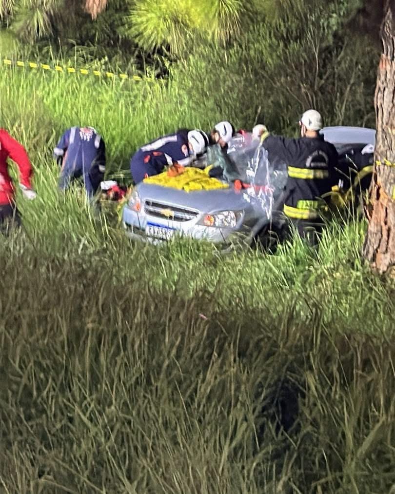 De acordo com as informações, o veículo saiu da pista e colidiu contra um pinheiro às margens da rodovia. No automóvel estavam duas pessoas, que ficaram feridas.