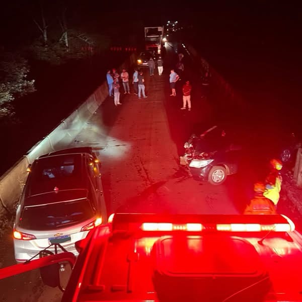 A colisão frontal envolveu dois veículos, que ficaram sobre a ponte. Um deles apresentava risco de queda, enquanto o outro permaneceu sobre a pista, obstruindo parcialmente a via.